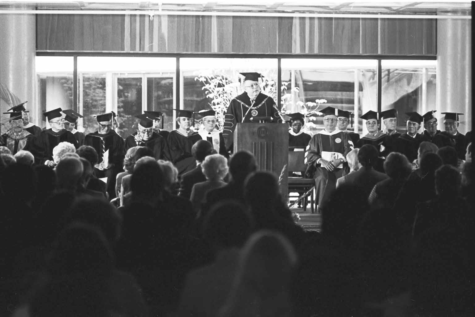 SPEA celebrated its 10th anniversary with the opening of its new home and a yearlong celebration. The school had grown from 25 students in the first graduating class to 351 in 1982, and the number of faculty more than doubled from 41 to 90 in that same span.